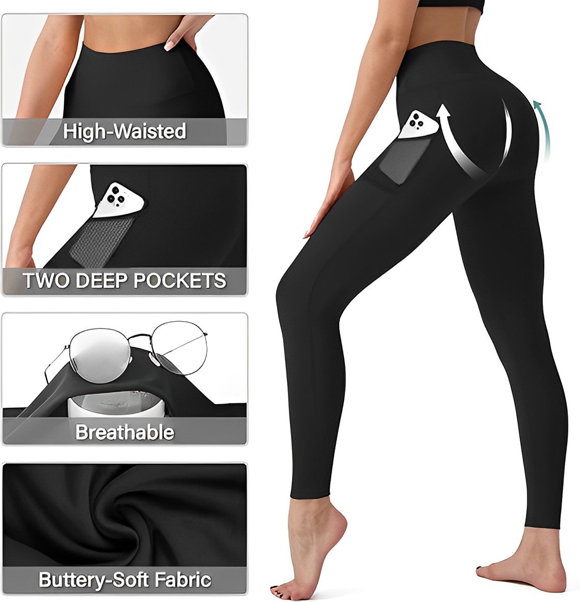 [ Features]: High waist design that offers support & comfort, without sacrificing style. Sandwich construction waistband with diamond-tip shape at the front giving you maximum tummy control benefit and that chic trimmed look. One pocket at each side to free your hands and keep your essentials close.